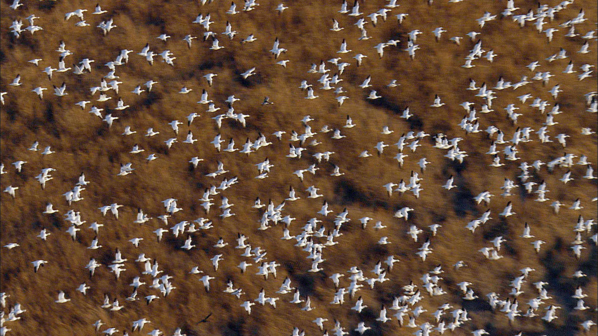 새끼 두루미 한 마리의 희생 덕분에 무사히 히말라야 산맥을 넘고 있는 나머지 두루미 떼들.