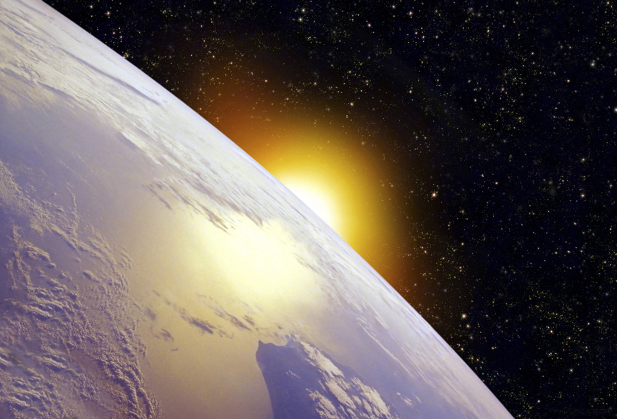 저 멀리 태양이 떠오르는 모습, 두근거리는 순간이다.